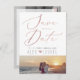 PixDezines sparor vårt datum eller sparar datumvykorten med ett elegant-, snyggt- och modernt faux-kalligrafiskript för ro guld. Se andra färger här: www.zazzle.com/wedding_by_design* Anpassa den! Copyright © 2008-2019 PixDezines™. Alla höger reserverade.