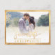 PixDezines falskt guld "spara vårt datum" klassisk fancy script font och era förlovningsbilder på framsidan och baksidan av vykort. Lägg till din bakgrundsfärg. Copyright © 2008-2016 PixDezines.com™ och PixDezines™ på zazzle.com. Alla rättigheter förbehållna.