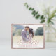 PixDezines ro guld skriver "spara our date"-typsnitt i finare och dina förlovning-foton på vykortens framsida och baksida. Lägg till din bakgrund färg. Copyright © 2008-2016 PixDezines.com™ och PixDezines™ på zazzle.com. Alla höger reserverade.