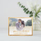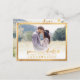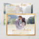 PixDezines falska guld "spara vårt datum" klassiska eleganta penselskrift och era förlovningsfoton på framsidan och baksidan av vykort. Lägg till din bakgrundsfärg. Upphovsrätt © 2008-2016 PixDezines.com™ och PixDezines™ på zazzle.com. Alla rättigheter förbehållna.