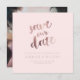 PixDezines-snyggt-penselskript sparar datumet i ro guld / rosa guld (faux foil) med DIY rosa bakgrund färg. Med PixDezines-dynamiska utformningar kan du redigera valfri inslag i den här inbjudningsmallen. Copyright © 2016 PixDezines.com™ och PixDezines™ på zazzle.com. Alla höger reserverade.