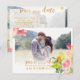 PixDezines vårens blommande akvarell, falskt guld "spara vårt datum" klassisk elegant borste skriftstil och era förlovningsbilder på framsidan och baksidan av vykort. Copyright © 2008-2016 PixDezines.com™ och PixDezines™ på zazzle.com. Alla rättigheter reserverade.