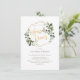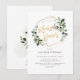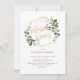 PixDezines vackra akvarellgrönska av eukalyptus och fikusblad inramad över falskt guld bikupemönster för denna vackra övningsmiddags inbjudan.