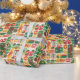 A pixel art pattern featuring a grid of colorful Christmas gift boxes with bows, ribbons, and festive details in red, green, yellow, and cream tones.