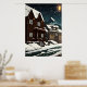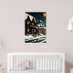 En liten lugn norsk stad i snö på natten, pixelkonst. Det här är en AI-skapad konst.