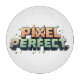 En djärv och dynamisk design med texten "Pixel Perfekt" i ett klassiskt pixelformat, som påminner om retrovideospel. Texten återges i en slående palett i färg, som framkallar en känsla av nostalgi och spelkultur. Den övergripande sammansättningen är dynamisk och öga-infångande och tilltalar både spelare och retroentusiaster.