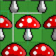 En champinjon för PIXELkonstflugsvamp. Den röda prickiga champinjonen är på en grön bakgrund. Bakgrundsfärgen kan ändras.