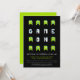 Grafiska pixelgalna främmande monster som spelar stil-barn i inbjudningskorten party. Perfekt till inbjudan din sons favoritvideospelare till födelsedagsbäcken. Anpassa med dina egna detaljer. Ett unikt designad exempel från Sarah Trett på www.mylittleeden.com på zazzle.