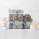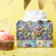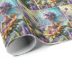 En viskös päls med späckigt lila och stora solglasögon är på gång med en vibrerande solros