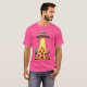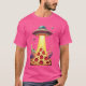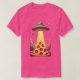 En flygande sås som bortför en gigantisk bit pepperonpizza med en glödande oststråle, tecknad stil, vibrant färg, kosmisk bakgrund, retro middag vibes