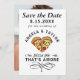 Skicka din familj och dina vänner det här bröllop spara datum-kortet för roligt för att meddela din förlovning. Den här trendiget har två skikt av delikat pizza med ost, pepperoni, paprika och svamp. Ovanför står "Spara datum för bröllop av" med namn för att anpassa sig. Under pizzan står det "pizza paj that's Amore" På baksidan av kortet finns ett foto som du kan byta ut mot ditt eget för en typ som räddar det datum som din familj och dina vänner kommer att ångra! Gratulerar på din förlovning! Designad av konstnären ©Susan Coffey.