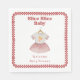 "Segce slice baby" pizzakaskirurgi med babydusch som illustrerar en baby-klänning med rödstripade sleever och illustration av pizza i mitten. Gräns är den röda schackbrädesdesignen i hand plockade med rundade hörn.