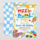 Blå Preppy Pizza och pool Födelsedagsinbjudan, Kom och splash Födelsedagsinbjudan, Redigerbar sommar pool Barn födelsedagsfest