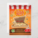 A lively pizza party invitation unfolds with a vibrant orange backdrop, featuring a playful pizza box overflowing with cheesy slices. The camera performs a dynamic zoom in, highlighting the delicious toppings and the inviting text that reads 'Pizza Party.' As the zoom continues, the scene transitions to a festive atmosphere filled with cheerful graphics of pizza slices and party elements. The lighting is warm and inviting, enhancing the fun mood, while the overall style is colorful and cartoonish.
