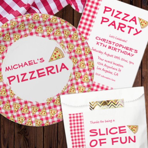 Pizza party kids birthday with red and white gingham