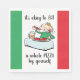 En pizza party napkin med italienskt färg och en rolig tecknade figurer som äter pizza med öl, med anpassadet "det är okej för EAT en hel PIZZA själv"