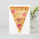 Rolig inbjudan med en läcker pizzaslice. Inbjudan lyder: Pizzafest