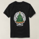Skapa ett dekal av en Julgran-formad pizza. pizzan är dekorerad med färgad ljus och en stjärna på toppen. Den har två arm och ben och verkar dansa eller hoppa. Bakgrunden är vit, och det finns text ovanför pizzan som lyder: "Allt jag vill ha till jul är pizza", illustration.