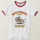 PizzaRodentlogotypen och att presentera röd & grön text och en fartfylld tecknadleverans tjaller bära på en skiva, spring hans snabbast för att göra den leverans i rätt tid! T-tröja noveltygåvabylte.