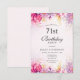 Den här blommiga pastellfärgade vattenfärgsschica födelsedagsinbjudan är den perfekta blandningen av elegans och femininitet. Det klassiska girltemaet frammanas med hjälp av ömtåliga rosa vattenfärgblommor, chic kaligrafi och serif-typografi. Oavsett om du väljer den digitala eller tryckta versionen kommer denna inbjudan att sätta tonen för en stilren och sofistikerad fest. Omfamna det vackra tillfället med denna utsökta design, tillgänglig på Zazzle. Anpassa och beställ denna stilrena inbjudan på Zazzle för att göra din händelse oförglömlig. Personifiera inbjudan med dina detaljer och om du vill ändra stil och placering av texten ytterligare, tryck på knappen "Klicka för att anpassa ytterligare