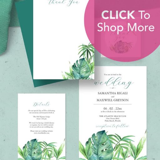 Det här tropiska destinationskortet eller eskorteringskortet har en gräns för vattenfärgen handflatan löv och grönenergi. Det finns utrymme för gäst namn och bordsnummer. Kort bakåt om du vill visa matchande brid och triomens namn och bröllop datum. Insidan har en komplimang som dyker upp grönt färg. Ett charmerande och botaniskt tema för Jamaican, Florida Nycklar och Filipiniana bröllop. Om du vill se matchande bröllop-bord-dekoration går du till www.zazzle.com/dotellabelle Original water color art and design by Victoria Grigaliunas. Ge mig ett budskap om unika och skräddarsydda bröllop-stationers utformning.