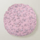Placerare av pärlor av vit rosa på rosa sammet rund kudde