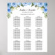 Placeringsplan vigselceremoni blå blommor skylt