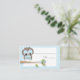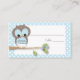 Samordna platskort i min lilla baby blue uggla-design med en pastellblå och vit polkadot-bakgrund.