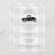 Invitera dina gäster i stil med denna lantliga retro inspirerade fars dagpartyinbjudan. Denna design presenterar en pickup lastbil för vintagesvart på en bakgrund för grått- och vitbuffelpläd. Ditt party specificerar kan personifieras för att passa dina behov. Designat vid berömd konstnär©Tim Coffey för värld.