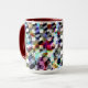 Bild av upprepade schackbyar som vrids under färgstarka fläckar.