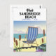 Plage du Donnant Frankrike, vacker däckstol i vintage stil på en reseaffisch för strandanslutning.