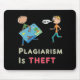 Plagiarismen är stöldsymbolen som visar att en tjuv stjäl konstverk, medan upphovsrättsägaren och upphovsmannen springa bakom skriften "Hej!". Under ord säger "Plagiarism är THEFT".