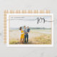 Dela JOY med familj och vänner med detta moderna, rena julkort med ett foto. Baksidan har ett djärvt, randigt mönster. Personalisera detta kort med ditt eget namn, år och horisontellt foto på framsidan. Välj mellan en mängd olika papperstyper. Välj det rektangulära 5" x 7" kortet eller lägg till en formsnittad kant. Matchande artiklar finns tillgängliga.