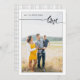 Dela KÄRLEK med familj och vänner med detta moderna, rena, enkla vertikala foto, högtidskort. Baksidan har ett djärvt, randigt mönster. Personifiera detta platta kort med ditt eget namn, år och horisontellt foto på framsidan. Välj mellan en mängd olika papperstyper. Välj det rektangulära 5" x 7" kortet eller lägg till en form med utskuren kant. Matchande artiklar finns tillgängliga.