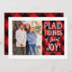 Detta roliga fotofirande julkort har buffalo-rutigt mönster och en fantasifull ordlek - "Plaid tidings of great joy!"