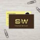 DIN FAVORITE - Gör ett bestående intryck med den här moderna utformningen av affärskortet med monogram och (medarbetare-) foto, på rena mörken brun och grädda - bakgrunder för färgad av gult. Anpassa enkelt det här affärskortet till ditt varumärke. ♡ DIN FAVORITE - Designer:-) Modern och professionell affärsvaror. ♡ jag önskar er lycka till med denna punkt. ♡ www.zazzle.com/store/your_favorite ♡ www.zazzle.com/store/favorite_markeplies ♡