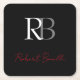 Plain Modern Black Monogrammed Initialer Namn Underlägg Papper Kvadrat