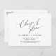Det här är det moderna minimalistiska, rena skriptet, designtemat, i svart teckensnitt, Bröllopsfestens inbjudan Omschemalagt vykort (byte av program). Det är perfekten och eleganten som gör det möjligt att lägga om meddelandet till vänner och familj.