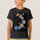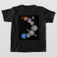 Vertikalt: Mercuryen Venus, jord med månen, fördärvar, Jupiter, Saturn, Uranus, Neptune.