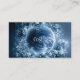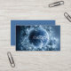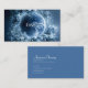 Define your brand with celestial mystery and ethereal elegance using this captivating business card. The design centers on a stunning, luminous dark blue sphere (resembling a planet or moon) detailed with swirling white cloud-like patterns, instantly drawing the eye. This cosmic centerpiece is richly framed by an overflowing circular wreath of detailed blue-toned roses and lush foliage, creating a beautiful juxtaposition of the cosmos and nature. The entire background is a deep, cool monochromatic blue with subtle texture and sparkling light, enhancing the dramatic, otherworldly aesthetic. This artwork beautifully captures the magic and solitude of a nocturnal, frozen garden. This business card is ideally suited for a spiritual advisor or astrologer offering services centered on cosmic energy and destiny, a luxury spa or wellness retreat promoting tranquil, cool-toned therapies, or an exclusive event stylist specializing in twilight or celestial celebrations. It would also perfectly suit a fine jewelry designer showcasing cool-toned or icy pieces, or a boutique perfumer whose products evoke complex, mysterious scents. The card's captivating combination of cosmic imagery and abundant blue florals ensures it is versatile for any sophisticated announcement, a refined gift enclosure, or an elegant invitation.