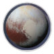 Det här är ett foto av dvärgplaneten Pluto. Efter många debatter och flera år gick det från att vara en planet till att inte vara en planet, och även om inte alla är överens, kallas det nu i allmänhet en dvärg eller mindre planet. Det är en sjättedel av vår måne och mest av is och sten.