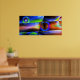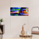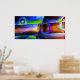 poster som fångar upp öga har abstrakt digital konst med geometriskt linjer och cirklar, vilket liknar en abstrakt av planeter på färgfulla paneler i rymden.