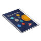 En färgstark solsystemillustration med 8 planeter: Kvicksilver, jord, Venus, Neptune, Saturn, Uranus, Mars, Jupiter och Sol mot en stjärnbakgrund, mörk blått bakgrund. Denna moderna utformning är både snyggt och utbildning, underbar som dekoration och hemundervisning.