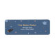 Ett temat Returadressetikett med planeter, stjärnor och en raket i tecknad stil på blå bakgrund. Anpassa dem och använda dem till födelsedagsfest inbjudan, party eller bara till brev om du har kärlek och galaxer!