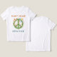 Den här t-shirten har en sjudande fredssymbol för grönt som blommar med viner, blommor och fjärilar.