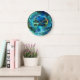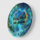 En rektal bild med blå och grönt, blixtliknande elektriska utsläpp i en sfär. Lägg till din egen text.