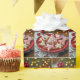 En festlig röd platta visningar en mängd julmatade kakor, inklusive stjärnor, träd och tomten