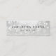 affärskort för chic och elegant i en pappert sparande storlek mini-funktion med klassisk svart text på en silvrig grått-bakgrund, adorterad med en spricka av vit borkeh-ljus överst. Lägg till kontaktinformationen för fullt längst bak. Ett unikt val av elegant för vilket yrke som helst. Ett exempel visas för estetiker.