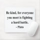 " Var snäll, for alla som du möter, slåss en hård strid.", - Plato