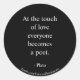 Platocitat; Kärlek-rundans pekdon. Vid beröringen av kärlek blir alla en poet. Plato | Grekiska: var filosof i det klassiska Grekland och grundare av akademin i Aten, den första högskoleinstitutionen i den Westerna världen. Han anses allmänt vara det mest centrala figur i filosofiutvecklingen, särskilt den Westerna traditionen. Det finns så mycket mer om den här fantastisk på följande Wikipedia-sida om du vill titta. https://en.wikipedia.org/wiki/Plato